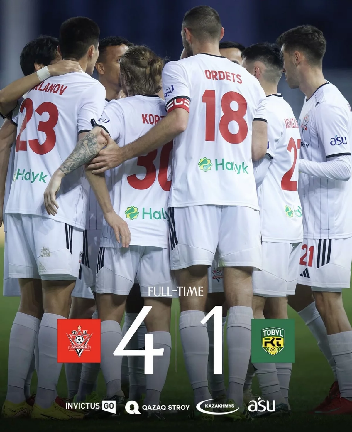 Кездесу "Ақтөбенің” басымдығымен өтіп, команда жаңа маусымға бірден жарқын мәлімдеме жасады. Голдарды Даниэль Соса, Айдин Зелькович, Тимур Досмағамбетов және Иван Ордец соқты, ал қостанайлықтар сапынан жалғыз допты Жаслан Жұмашев енгізді.