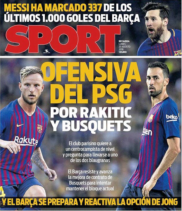 Sport.es басылымының хабарлауынша, француздық клубтың жартылай қорғанысына бір ойыншы қажет. Сондықтан, "ПСЖ" басшылығы Серхио Бускетс пен Иван Ракитичтің жаңа келісім-шарты төңірегіндегі жайттарға алаңдаулы екен. Алайда, "Барселонаның" бас бапкерінің тактикалық схемасының маңызды ойыншылары каталондық клубтан кетуі екіталай.
