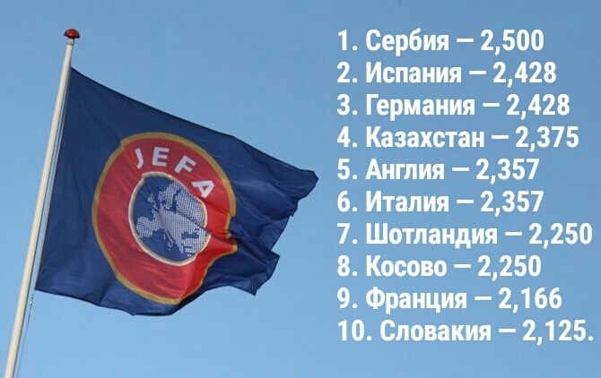 Қазақстан УЕФА рейтингінде көшбасшылар қатарында
