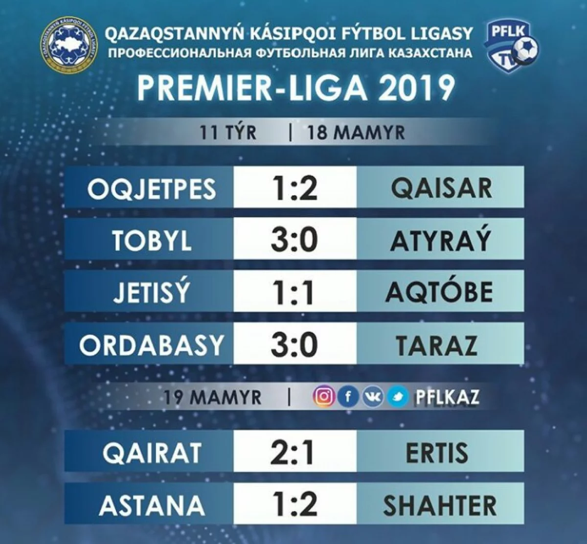Ал "Ақтөбе" алғаш рет биылғы маусымда тең түсті. Енді тек "Тараз" және "Ертіс" командалары ғана маусым басталғалы тең ойнап көрген жоқ.